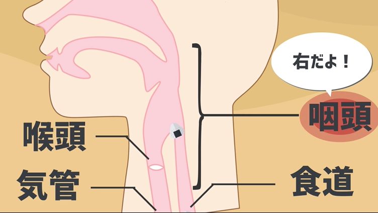 咽頭は食べ物がスムーズに食道に流れていくように、食べ物を導いてあげる仕事をしていますし、はたまた喉頭では食べ物を飲みこんだ時に気管にパタッとふたをして、食べ物が間違った方向に流れていくのを防ぐ仕事をしています。