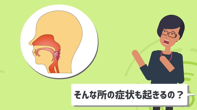 実は咽頭がんはのどの症状だけではなく、そんな所の症状も起きるの?と思われるような意外な症状もあります。