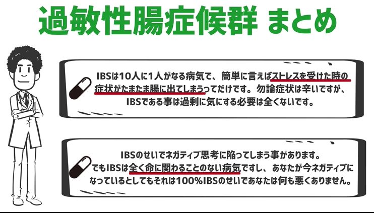 この動画がIBSに困っている人の助けに少しでもなれたらいいなと思います。