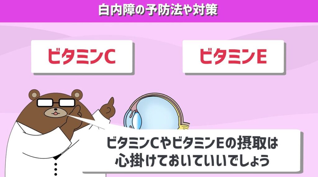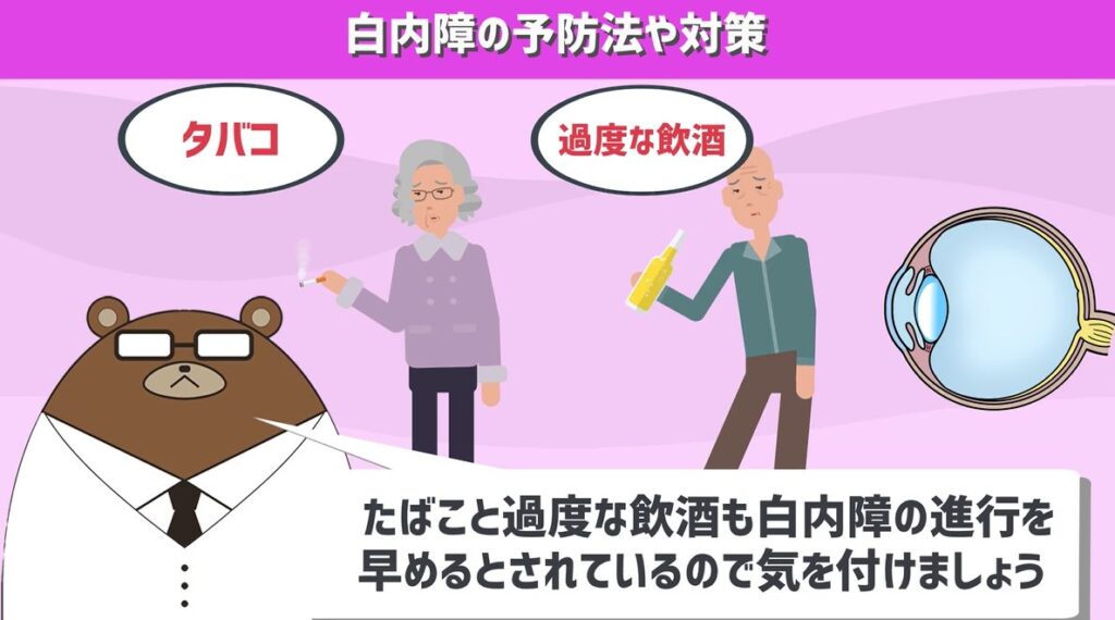 では、白内障のサインがあって、実際に白内障だったらどうなってしまうんでしょうか。また、そもそも予防法はないのでしょうか。