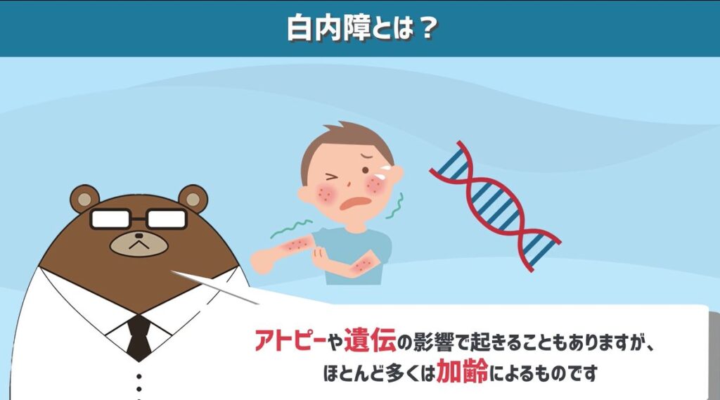 白内障はアトピーや遺伝などの影響で起きる事もあるんですが、ほとんど多くは加齢によるものなんです。