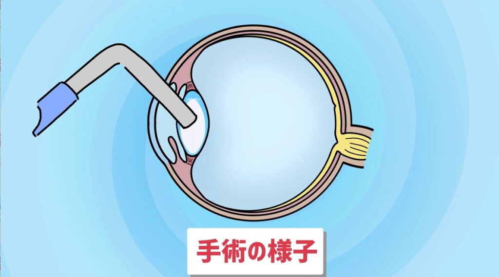 手術では、水晶体の中の濁った部分を吸引して吸い取ってしまい、その中に人工のレンズをつるっと滑り込ませます。これで人によっては眼がもとのようにはっきり見えるようになる場合があるんですね。