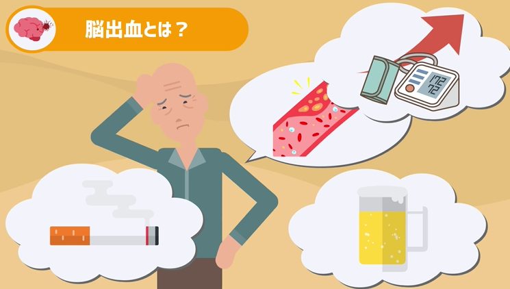 血圧が高く、血管の壁に負担がかかる状況が続く事で、動脈硬化が進行し脳出血のリスクが上がります。