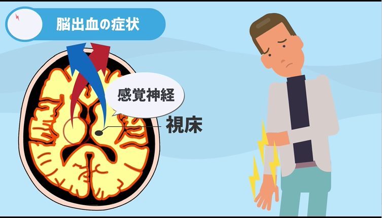 また視床という場所は主に感覚神経の通り道で、例えば左の視床で出血が起きると、脳は逆側の体に指令を送っているので、右半身の感覚が全然感じなくなったりするんです。