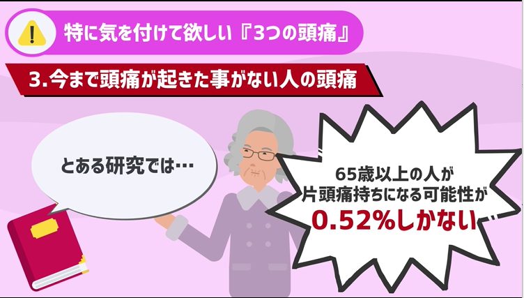 最後、3つ目が、「今まで頭痛が起きた事がない人の頭痛」です。
