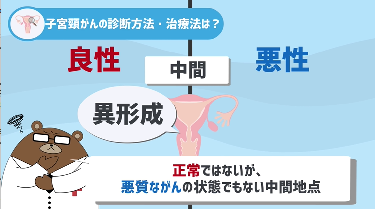 正常ではないが、悪質ながんの状態でもない中間地点が、子宮頸がんでは存在するんですね。