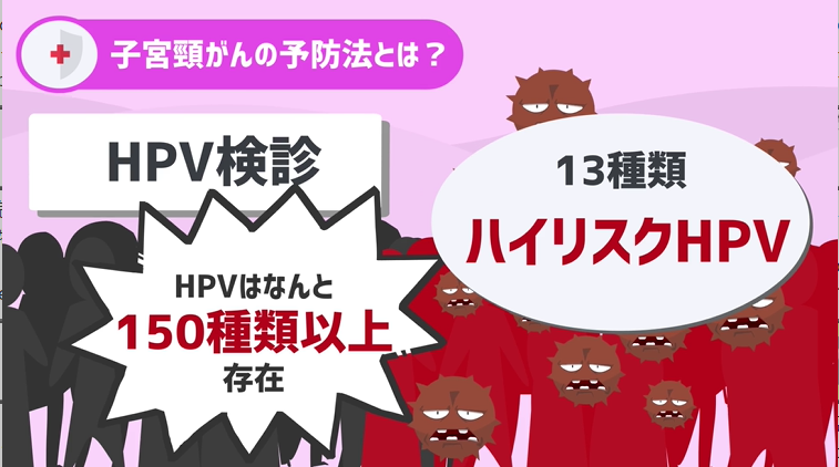 HPVはなんと150種類以上も存在するのですが、その中で子宮頸がんを起こしやすいのが13種類おりまして、こいつらを「ハイリスクHPV」と呼びます。