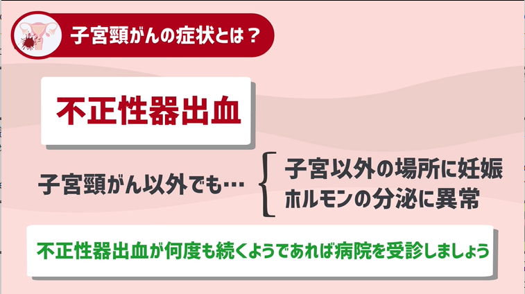 子宮頸がん以外にも不正性器出血には子宮以外の場所に妊娠してしまったり、ホルモンの分泌に異常が起きていたりと様々な原因があるので、何度も続くようであれば病院を受診しましょう。