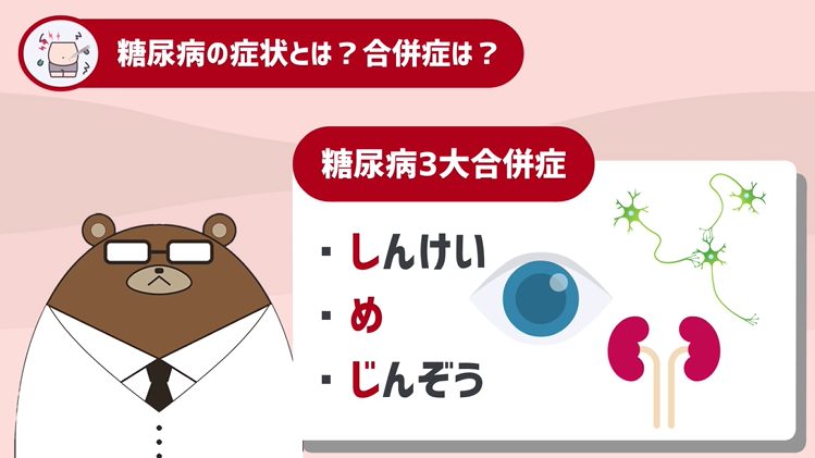 まず、糖尿病には「3大合併症」と呼ばれるものがあります。人間の体の中で