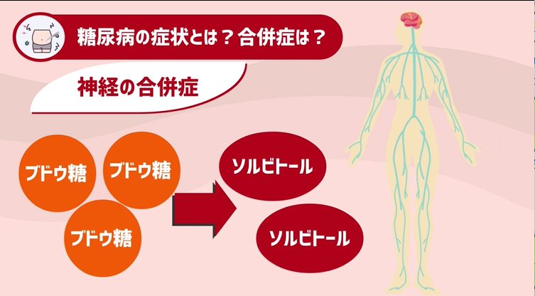 原因は未だはっきりとはしていないのですが、ブドウ糖が余分に存在すると変化して発生するソルビトールという物質が神経にたまる事が原因という説もあります。