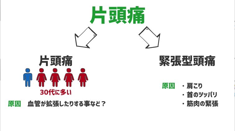 いわゆる片頭痛と、それとは別に緊張型頭痛というものの2種類なんです。