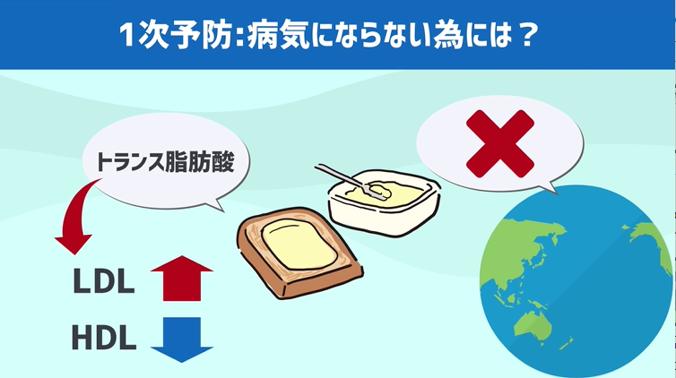 マーガリンに含まれるトランス脂肪酸という成分が悪玉コレステロールであるLDLを上昇させ、善玉であるHDLを低下させる、という最悪のエビデンスがあり、相乗効果で動脈硬化を進行させる恐れがあるんです。