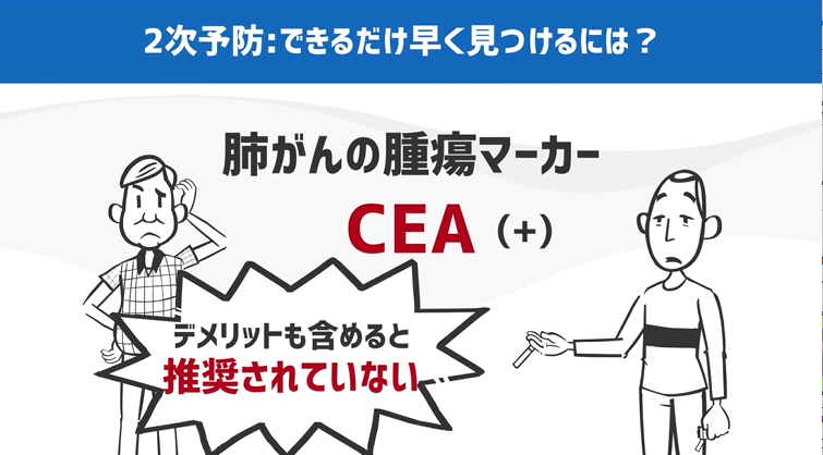 このCEAがちょっと陽性だったからといって、早期発見には役立たないと言われていますし、精密検査を過剰に行うデメリットも含めると、推奨されていないんです。