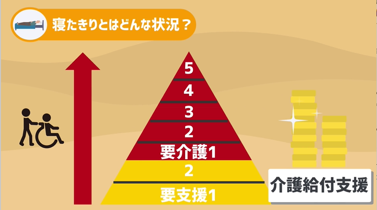 寝たきりの話をする際には、医学の話より「介護認定」の話の方が身近だと思うので、介護の話に沿って説明します。