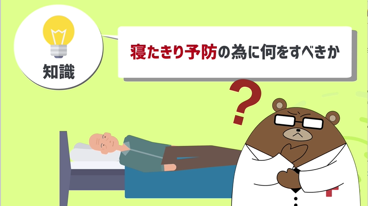 勿論一番良いのは自立している段階でこの介護が必要な状態にならない寝たきり予防に取り組む事です。