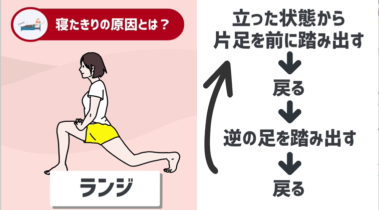 ②加齢による筋肉の減少から身を守るために適度な筋トレをする。おススメはランジ。
